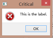 QMessageBox::critical( this , "Critical" , "This is the label." );