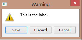 int msg=QMessageBox::warning( this , "Question" , "This is the label." ,QMessageBox::Save|QMessageBox::Discard|QMessageBox::Cancel,QMessageBox::Save);