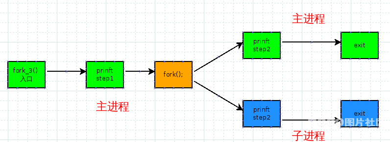 需要注意的是, 假如没有做特殊处理, 子进程会一直存在, 即使fork_3()函数被调用完成, 子进程会和主程序一样,返回调用fork_3() 函数的上一级函数继续执行, 直到整个程序退出.