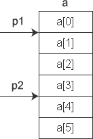 如果两个指针变量指向同一个数组的元素,则两个指针变量值之差是两个指针之间的元素个数,见图6.25。