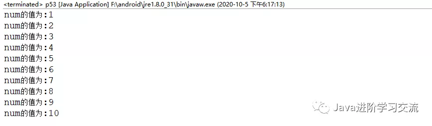 - System.out.println("num的值为:"+num);