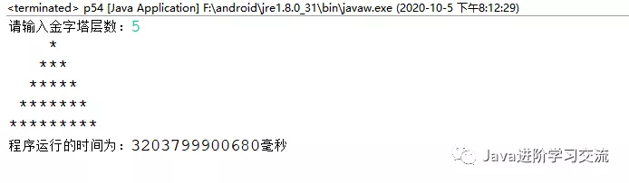2.计算程序在进行打印金字塔图案所消耗的时间例子