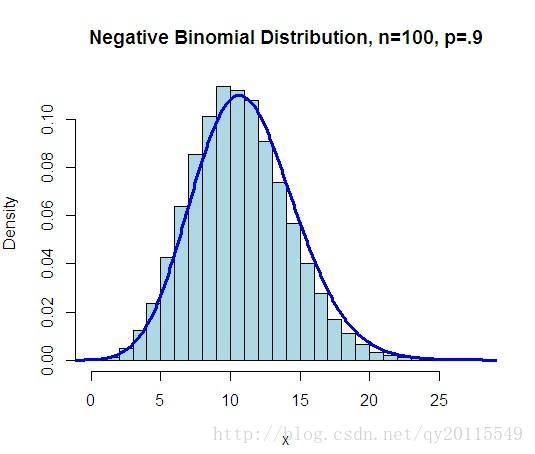 如下程序为n=100,p=0.9的二项分布采样,共采样10000次