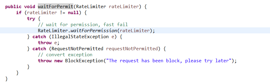 - privatefinalRateLimiterrateLimiter=RateLimiter.create(5.0);