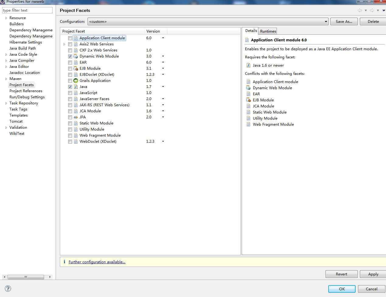 选择"dynamic web module" 然后点击下面的"futher configuration availiable.."