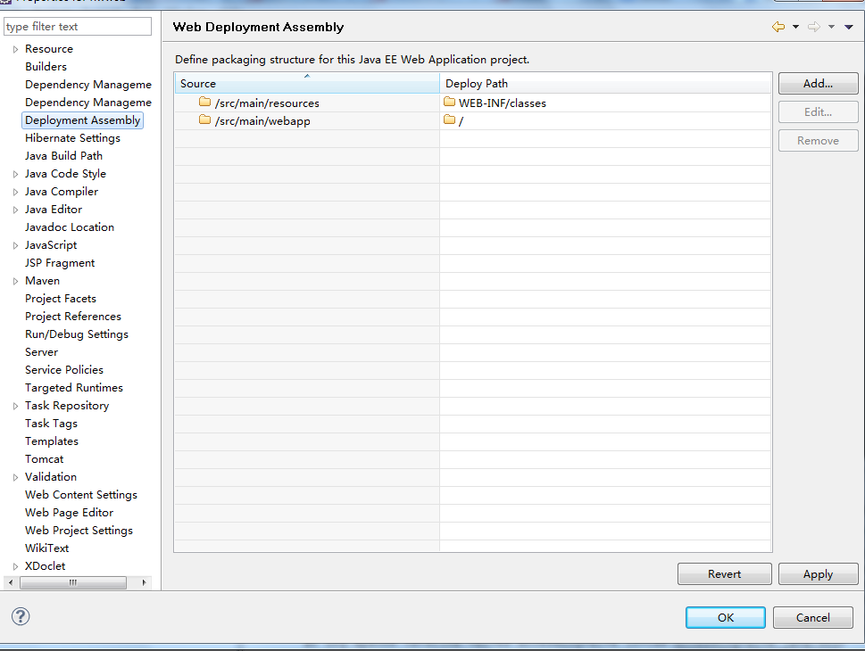 继续在项目上点击右键 ,选择properties,在其中选择deployment assemble选项,