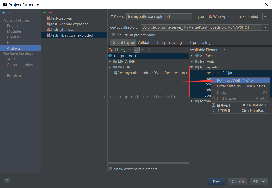 2.如图1.4,进入artifacts,右击将新添加的lib下的包,put into /web-lif/lib