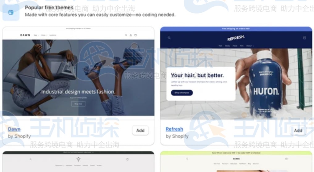 Shopify主题商店包含 100 多个付费和免费主题,每个主题都有独特的风格和功能,每个Shopify建站主题都是可定制的、用户友好的,并允许用户在编辑时预览跨境独立站。