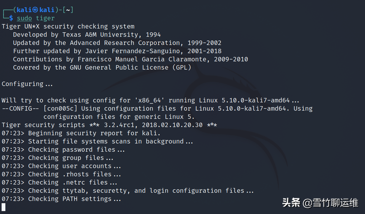 Tiger 是开源软件,它包含不同的 shell 脚本来执行安全审计和入侵检测。Tiger 扫描整个系统的配置文件和用户文件以查找任何可能的安全漏洞。然后将这些报告回用户进行分析。所有这一切都是通过它在后端使用的多个 POSIX 工具来实现的。要安装 Tiger,您可以直接下载源代码或使用包管理器从默认存储库安装它。