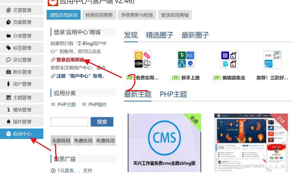 以上就是zblog更换主题模板时提示未登录应用中心客户端的错误解决方法,希望能给大家带来帮助!