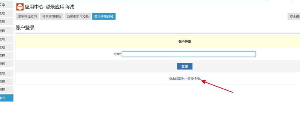 注意,这里所说的应用中心客户端,不是后台管理员,而是在后台的“应用中心”菜单处登录,如下图二