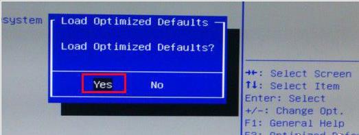 3、此时屏幕会弹出一个提示窗口,我们点击yes选项,或使用光标选择yes选项,按回车键执行,接着再按F4快捷键保存更改,如下图所示: