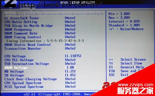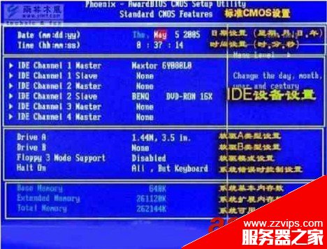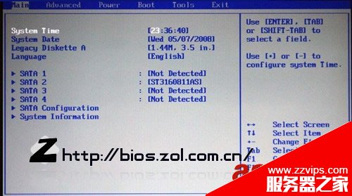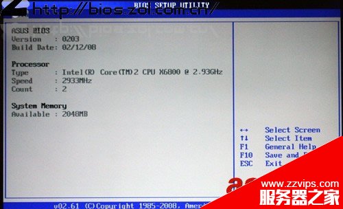 大家可以用方向键移动光标,回车键确认,ESC键返回,用PageUp,PageDown和数字键键调整设置,在任何设置菜单中可以按下F10键退出并保存设置,这些都和AMI Bios设置差不多!那么就正是进入设置!
