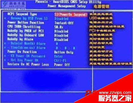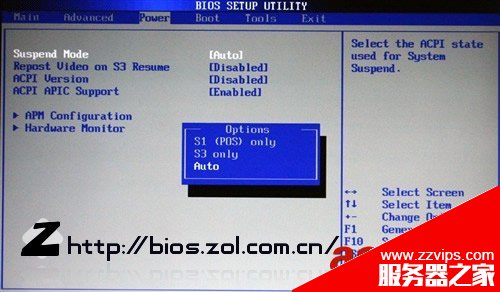 Power菜单里第一项是挂起模式,对于PC机来说,建议选择S3