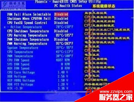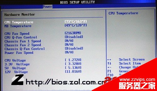 一般来说,Power菜单里还有个硬件监控页面,这个页面里显示了当前CPU、主板等设备温度、电压、风扇转速等内容,在某些时候也可以根据这里排除一些故障。