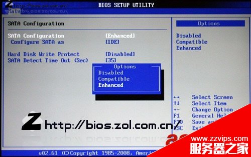 SATAConfiguration从字面上意思来理解,表示SATA配置,上图是直接进入此项目的界面。在这里,我们可以对主板上的SATA工作模式进行调节,甚至关闭SATA接口的功能。