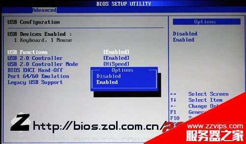 Functions就是配置是否开启USB功能的项目,对于普通用户来说,当然应该开启此功能了。不过网吧机的话,这里就应该选择Disabled。