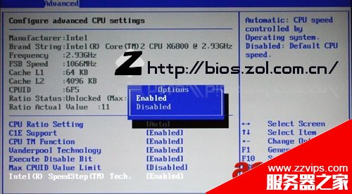 其他的几个选项用处都不大,最后一个项目是Intel有名的SpeedStep技术,如果开启此技术的话,可以实现CPU在空闲时自动降频,从而节省电能,强烈推荐笔记本用户开启此选项。