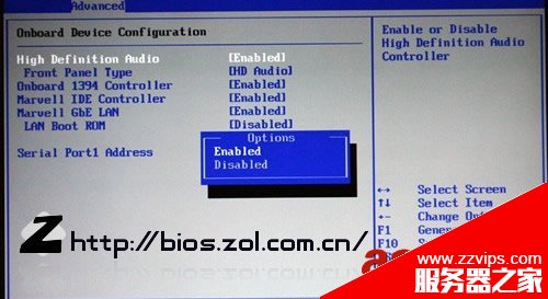 此菜单里主要讲述的是一些集成在主板上的设备,包括声卡、网卡、1394控制器等设备。有一天,你突然发现声卡消失了,或者网卡消失了,那么你就应该来BIOS里看看这里是不是被屏蔽了。上图正在调节高保真音频,如果你没有独立声卡的话,就选择Enabled吧。