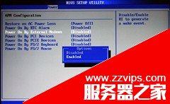 下面几个项目都是一些开机的方法设置,比如定时开机,远程Modem控制开机,PCI设备控制开机,键盘开机、鼠标开机等。使用方法都差不多。这里我们以键盘开机为例将一下这里的知识。键盘开机也就是通过键盘上的某个(组合)按键来开启电脑,不需要按机箱前面的Power按钮。要实现键盘开机的话,不仅主板要支持键盘开机,而且键盘也必须得支持此功能。还好,几乎现在所有主板都可以支持此功能,而绝大多数标准键盘也都可以支持此功能。 还有一点非常重要,键盘和鼠标开机都只能支持PS/2接口的产品,USB接口的键盘鼠标是无法支持的。