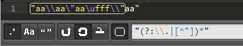 消耗掉正确的转义的意思是,比如 "aa\\\\aa\\"aa\\ufffaa" 都会被正常匹配,因为这些都在正常的转义。