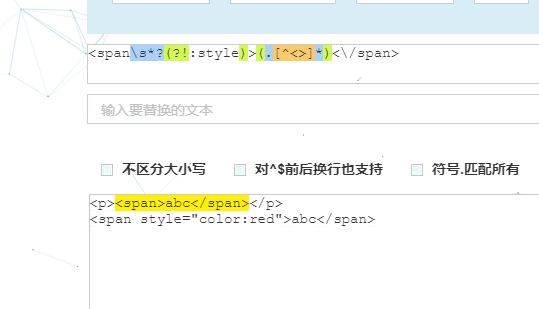 下面是快网idc小编写的打算将不带style的span替换为空的正则。