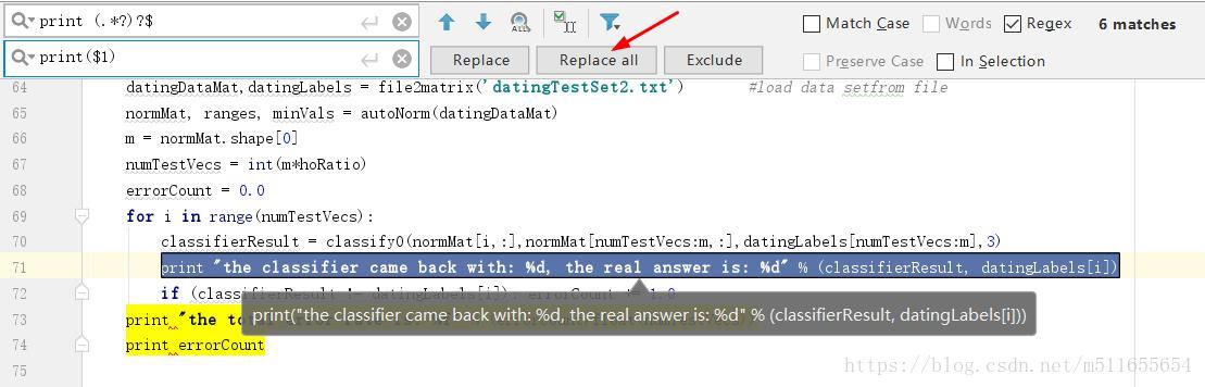 以上所述是小编给大家介绍的pycharm中使用正则表达式批量添加print括号完美从python2迁移到python3,希望对大家有所帮助,如果大家有任何疑问请给我留言,小编会及时回复大家的。在此也非常感谢大家对快网idc网站的支持!