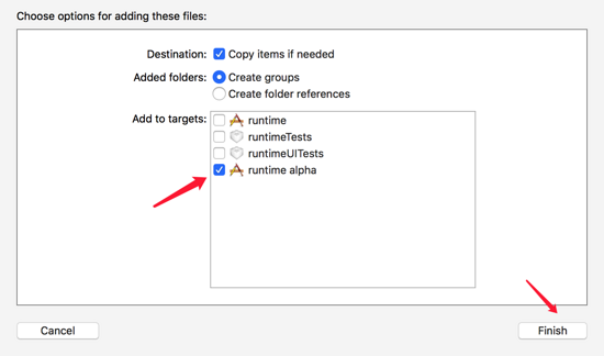 文件的同级目录,然后重新添加到项目中,注意选择的 target