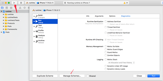 运行按钮(左上方),然后点击 manage schemes