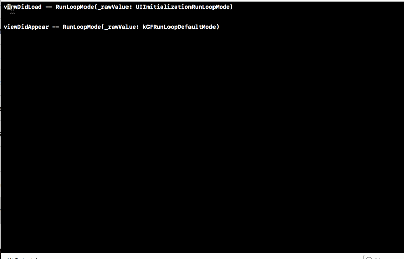 下方就是最终的运行结果。从输出结果中我们不难看出,在viewdidload()方法中打印的current mode为uiinitializationrunloopmode, 从该mode的名字中我们不难发现,该mode负责ui的初始化。在viewdidapperar()方法中,也就是ui显示后,runloop的mode切换成了kcfrunloopdefaultmode。紧接着,我们去滑动tableview,然后在scrollviewdidscroll()代理方法中打印滑动时当前runloop所对应的mode。从下方运行结果不难看出,当tableview滑动时,打印出的currentmodel为uitrackingrunloopmode。当停止滑动后,点击show current mode按钮获取当前mode时,打印的有时runloopdefaultmode。具体如下所示: