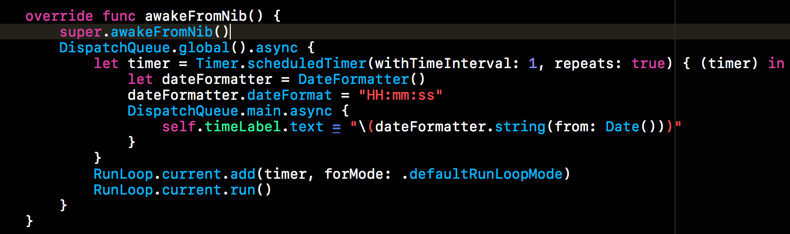 首先我们按照常规做法,直接在uitableview的cell上添加相应的nstimer, 并使用scheduledtimer执行相应的代码块。这种方式没有什么特殊的就是对timer的直接使用。下方是我们本部分的timer的使用代码,当然是使用swift来实现的,不过与oc的代码差不多。代码如下所示 :
