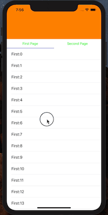 最先想到的是,既然是滚动视图那么我们是否可以通过滚动视图的可滚动属性来做呢,在初始时把最上层具体业务的tableview禁止滚动,那么根据事件响应链,滚动事件事件会由底层的scrollview接收并处理,在到达最大偏移量之后,禁用底层的scrollview滚动,同时开启上层的tableview,使得上层可以滑动,想起来是有一定可行性的,可惜,事实现实是残酷的,效果如下: