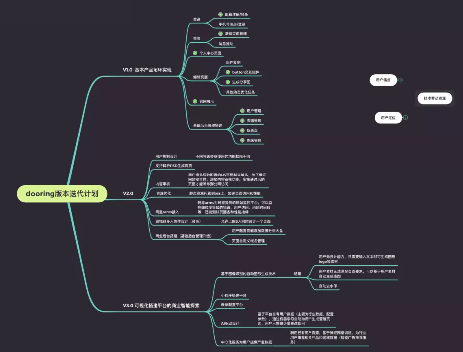 所以我们不要过度的追求结果, 我们在做有价值的开源项目的过程中, 自然会让自己变得更有价值. 从做H5-Dooring这个项目之前, 我就已经充分回答了自己提的上述4个问题, 所以项目最终的结果, 大家也有目共睹. 在我做完H5-Dooring第一版之后, 为了解决第四个问题, 我就筛选了几个志同道合的朋友, 和我一起迭代, 让项目按照提前规划持续推进下去.