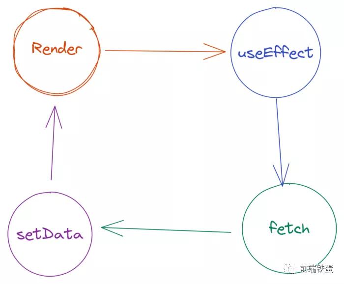 在这段代码中,我们使用 setData 在网络调用成功后设置状态值,它将触发组件的重新渲染。由于 useEffect 没有值可以比较,所以它将调用回调。