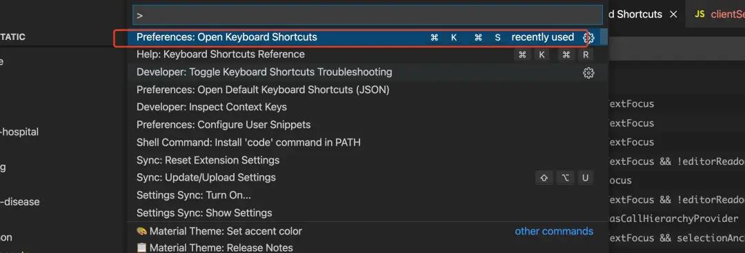 这里多说一句,快捷键其本质就是行为和特定按键【在特定场景下】的绑定,在vscode中通过JSON进行描述,我们可以通过执行>Open Keyboard Shortcuts(JSON)进行查看,如果我们需要实现一个高级的快捷键,就会需要这些知识了。