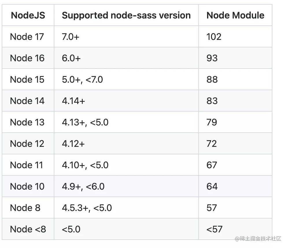 在 github 可以查到 node 和 node-sass 的版本对应关系:
