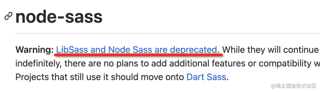 SASS 团队的两个主要维护者感觉自己支持 CSS 新特性的速度跟不上了,而且社区出现了 dart-sass 这个对 css 新特性支持更好的 sass 编译器,随着时间的推移,CSS 新特性支持上差距越来越大。最终,在 2020 年 10 月份,node-sass 宣布了不再继续支持新特性,标记为了过时,推荐使用 dart-sass。