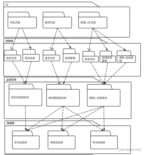 组件图是把某个容器进行展开,描述其内部的模块,主要是给内部开发人员看的,怎么去做代码的组织和构建,描述了系统由哪些组件/服务组成,了组件之间的关系和依赖,为软件开发如何分解交付提供了框架。