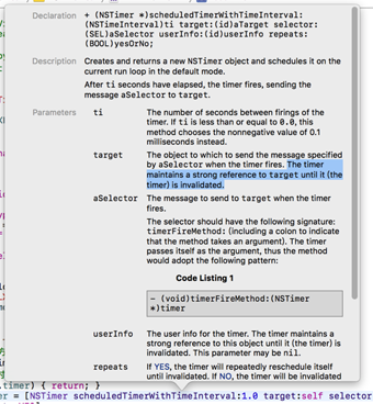 翻译:定时器保持着对target的强引用,直到定时器作废 那为什么lxftimerview中的timer属性要用weak?? 不用着急,下面即将揭晓~