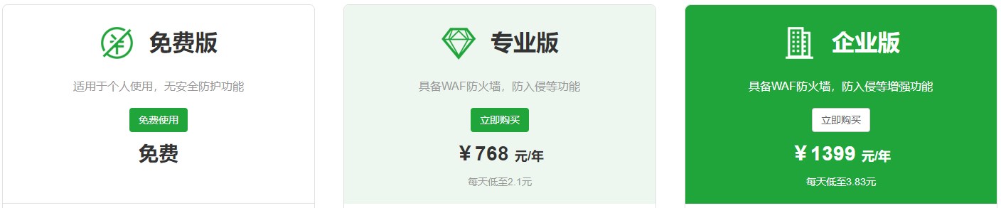 宝塔Windows面板目前有免费版、专业版和企业版套餐可选。其中免费版适合个人使用,无安全防护功能,只有基础的网站管理、FTP管理、数据库管理等功能。如果您想使用更多高级功能,建议购买专业版或企业版套餐。