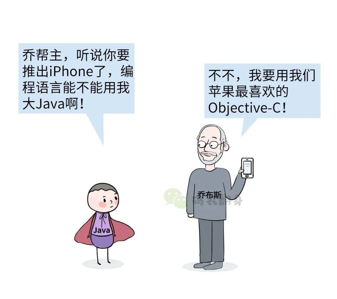 (注:乔布斯当年从Apple出走,创立NeXT公司,推出了NeXTSTEP操作系统,这个系统的原生语言就是Objective-C,而macOS和iOS都源于NeXTSTEP,所以iPhone选择Objective-C也算一脉相承)
