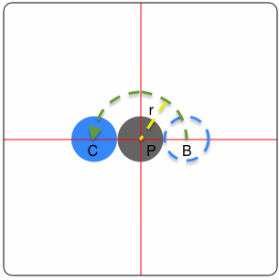 确定起始点、圆心、半径,让蓝色小球绕大圆