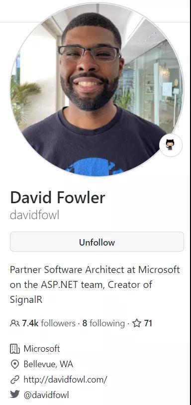果然, signalr的作者David Fowler实现了node、go版本, 这位老哥是.NET技术栈如雷贯耳的大牛: