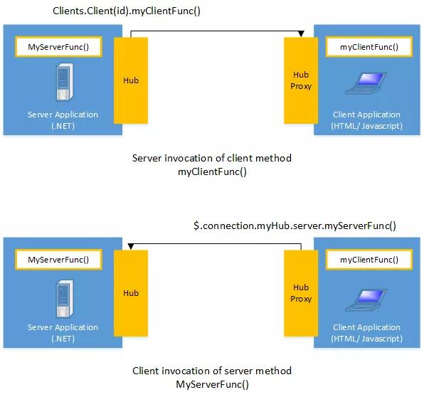 (1) signalR提供了一组API, 用于创建从服务端到客户端的远程过程调用(RPC),这个调用的具体体现是 :从服务端.NET 代码调用位于客户端的javascript 代码。