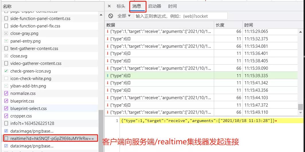 (2) web客户端利用上面的ConnectionId向特定的服务器地址/realtime连接,建立传输通道,默认优先websocket。