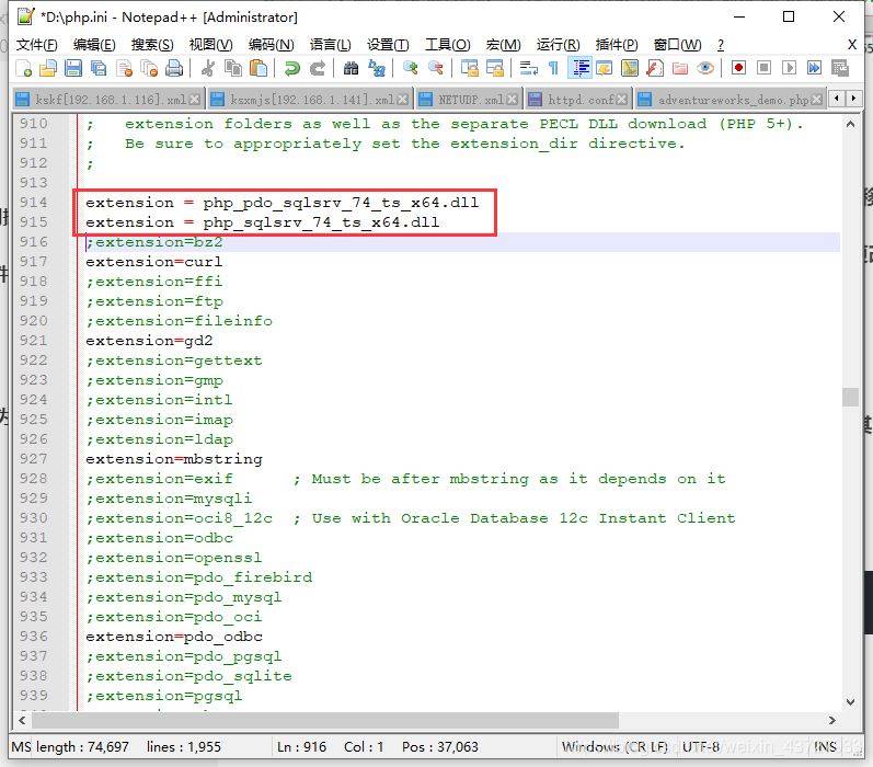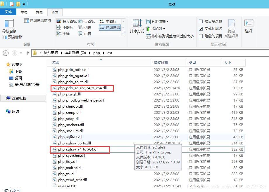 extension = php_pdo_sqlsrv_74_ts_x64.dll extension = php_sqlsrv_74_ts_x64.dll