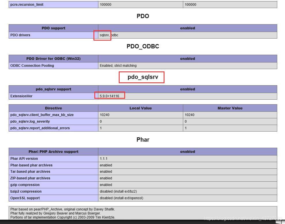 如果pdo_sqlsrv选项没有,说明驱动程序安装不对需要查一下对应的版本。具体的要查看Microsoft Drivers for PHP for SQL Server 系统要求一文地址:http://docs.microsoft.com/zh-cn/sql/connect/php/system-requirements-for-the-php-sql-driver?view=sql-server-ver15