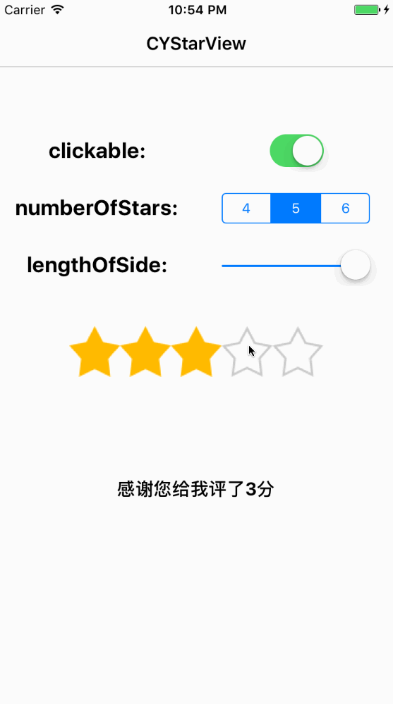 cystarview *starview = [[cystarview alloc] initwithframe:frame numberofstars:number lengthofside:length];