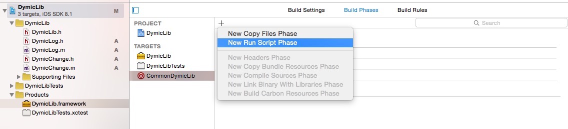 注意这个只是运行坏境下的动态库(模拟器和真机),下面建立新的targets:命名为commondymiclib: