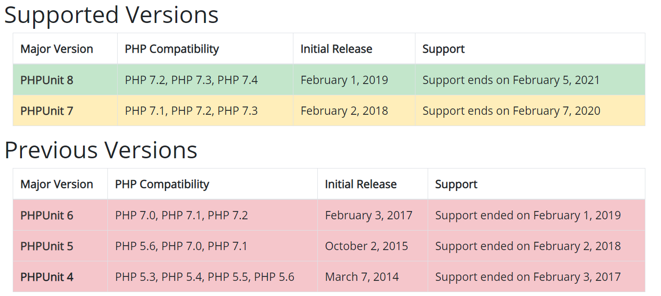 ⑦ php 和 phpunit 的对应关系https://phpunit.de/supported-versions.html